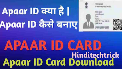 Apaar Id - Automated Permanent Academic Account RegistryAPAAR ID Card Kya Hai : APAAR ID Card Kaise Banaye | APAAR ID Card Download Kaise Kare | APAAR Card क्या है | APAAR Card कैसे बनाये इसे डाउनलोड कैसे करे |Apaar ID Card 12 अंको का एक महत्वपूर्ण पहचान पत्र है। Apaar ID सभी स्कूल छात्रों के लिए एक बेहद जरुरी दस्तावेज है।यह छात्रों कि शैक्षणिक जानकारी को डिजिटल रूप में सुरक्षित करता है। अपार आईडी Apaar Card डिजिटल पहचान पत्र है। जिसकी जरुरत पड़ने पर यह कहीं से डाउनलोड किया जा सकता है। जिन इंस्टिट्यूट या यूनिवर्सिटी मे एडमिशन लेना है वहां पर आपके शैक्षणिक प्रमाण पत्र के रूप मे दिखाया जा सकता है Apaar ID आज के डिजिटल समय मे उपयोगी साबित होगा । APAAR ID Card Kya Hai : APAAR ID Card Kaise Banaye | APAAR ID Card Download Kaise Kare |Apaar Id Card भारत सरकार कि एक उपयोगीमह्त्वपुर्न योजना है। जो भारत सरकार के शिक्षा मंत्रालय द्वारा लॉन्च किया गया है।Apaar ID कि कुछ खास विशेषताये :Apaar ID को भारत सरकार की राष्ट्रीय शिक्षा नीति जिसे NEP के नाम से भी जाना जाता है यह NEP 2020 के अंतर्गत इसे लागू किया गया है।